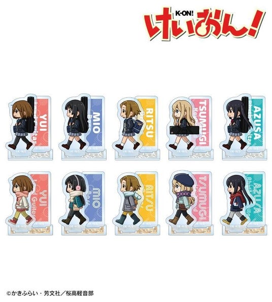 平沢 唯、秋山 澪、田井中 律、琴吹 紬、中野 梓が歩いているちびキャラを新たに描き起こし、パーツ付きのBIGなアクリルスタンドに仕上げました。