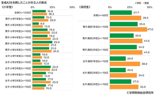 「家庭で利用したことがある」小学生の18%、高校生の40%