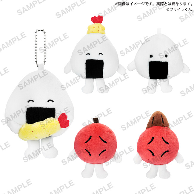 SNSで話題沸騰中の『フリイラくん』のおにぎりとうめぼしキャラクターのぬいぐるみマスコットが登場です!「おにぎり」と「うめぼし」、「おにぎりと海老天」、「天むすおにぎり」、「種が出るうめぼし」の全5種類!