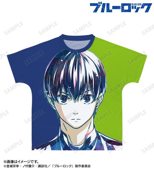 潔 世一、糸師 凛、凪 誠士郎、烏 旅人、蜂楽 廻、千切 豹馬、御影 玲王、氷織 羊、糸師 冴、オリヴァ・愛空、士道 龍聖のイラストを新たなタッチで魅力的に表現し、フルグラフィックTシャツに仕上げました。