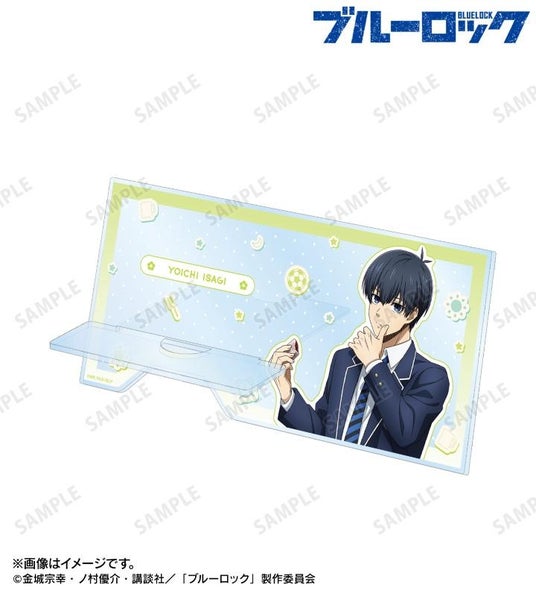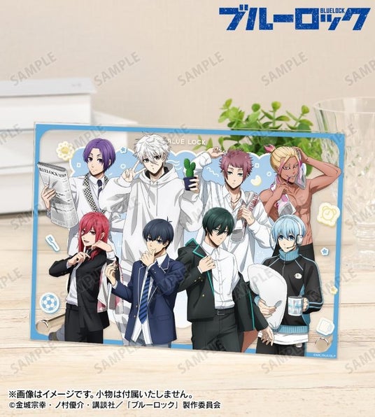 潔 世一、糸師 凛、凪 誠士郎、千切 豹馬 、御影 玲王、氷織 羊、糸師 冴、士道 龍聖の描き下ろしイラストを特大サイズのアクリルスタンドに仕上げました。