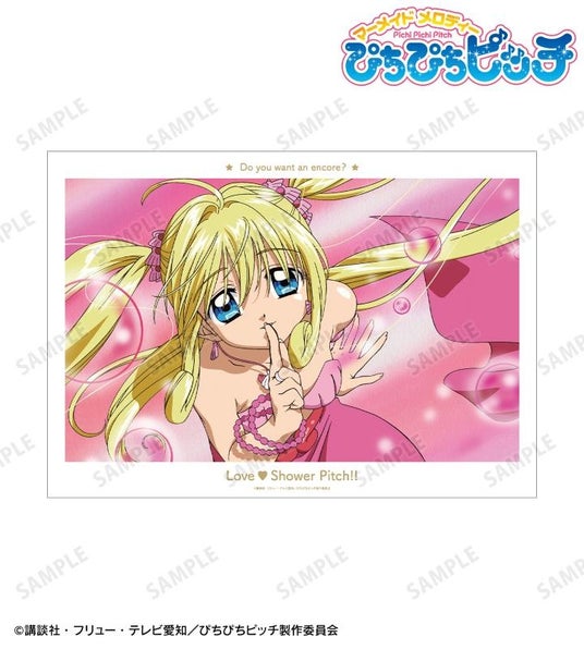 るちあ、波音、リナ、かれん、ノエル、ココ、星羅のイラスト、Do you want an encore?、Love Shower Pitch!!の文字をA3サイズのマット加工されたポスターに仕上げました。