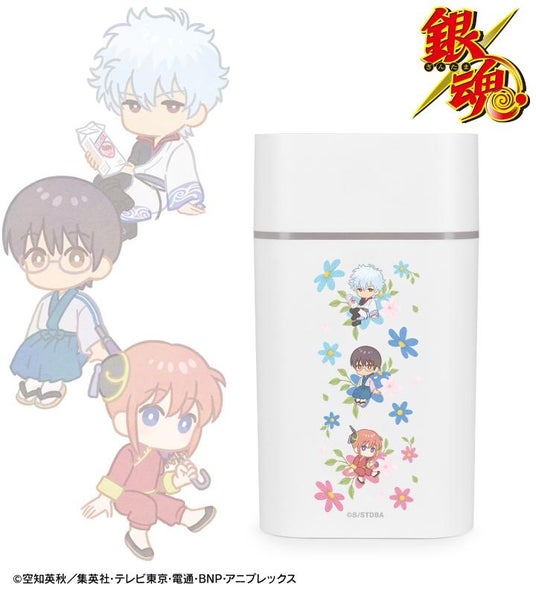 坂田銀時、志村新八、神楽、近藤勲、土方十四郎、沖田総悟、定春、エリザベスのイラストをボタニカルデザインに落とし込んで繊細なタッチで新たに描き起こし、卓上加湿器に仕上げました。