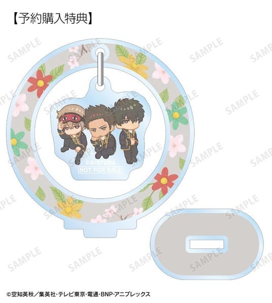 坂田銀時、志村新八、神楽、定春、近藤勲、土方十四郎、沖田総悟、桂小太郎、エリザベス、高杉晋助、神威、坂本辰馬のイラストをボタニカルデザインに落とし込んで繊細なタッチで新たに描き起こし、ゆらゆら動くアクリルスタンドに仕上げました。