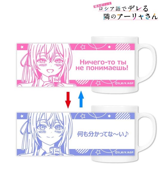 アリサ・ミハイロヴナ・九条のイラスト、印象的なセリフをチェンジングマグカップに仕上げました。