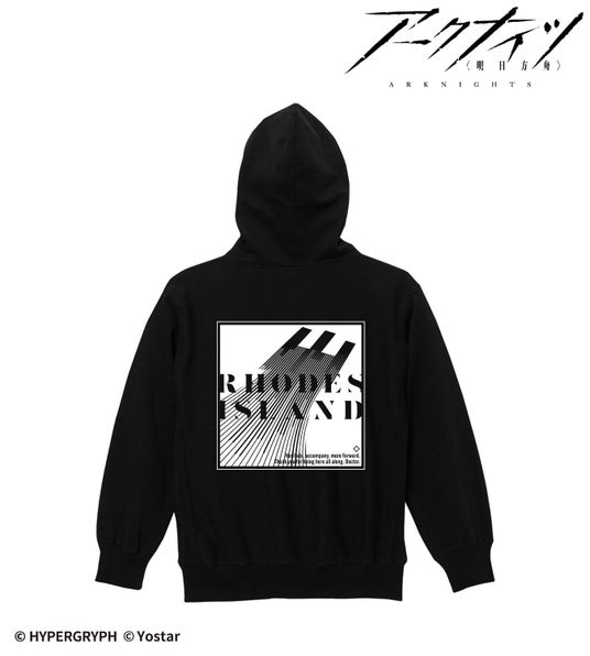 オペレーターの影がロドスのロゴになっていく様子をイメージしたデザインをパーカーに仕上げました。