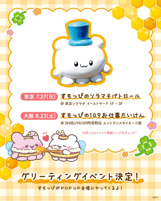 東京は「すもっぴのソラマチパトロール」、大阪は「すもっぴの109お仕事たいけん」と銘打ってそれぞれ違った内容のグリーティングイベントになるとのこと。