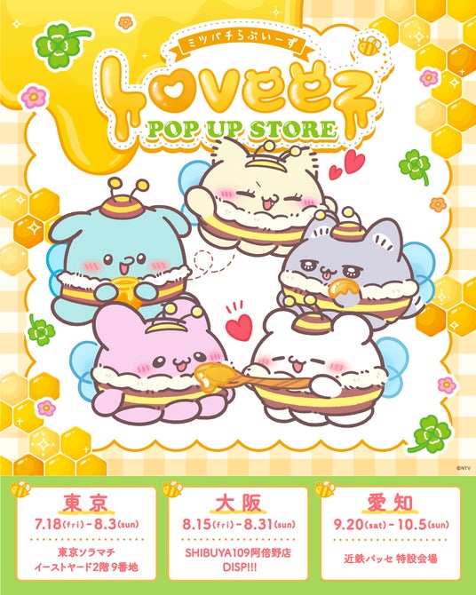 SNS総フォロワー数が200万を超える大人気キャラクター「らぶいーず」の公式ポップアップストア「らぶいーずPOP UP STORE ~ミツバチらぶいーず~」が、2025年7月18日(金)から東京・大阪・名古屋の3都市で巡回開催されます。