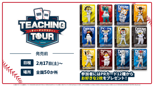 参加は無料で、参加者には12球団各マスコットのPRカード12種からお好きな2枚をプレゼントいたします。
