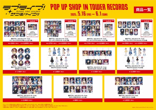 タワーレコード3店舗とオンラインにて、「『ラブライブ!サンシャイン!!』POP UP SHOP in TOWER RECORDS」を開催いたします。