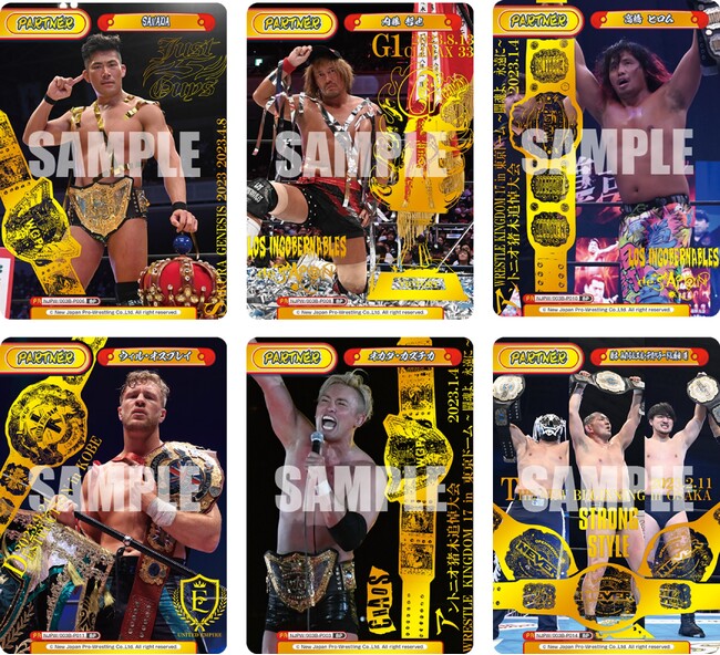 1ボックスに1枚、新日本プロレス/STARDOM選手のどちらかのベルト柄/トロフィ柄等の豪華箔押しカードを収録しております。