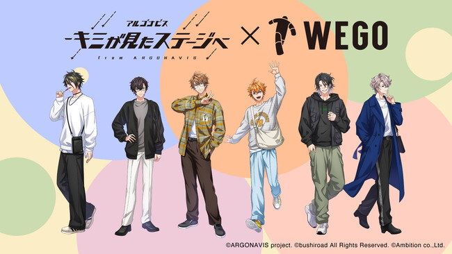 株式会社ブシロード(本社:東京都中野区、代表取締役社長:木谷高明)のグループ会社にあたる株式会社アルゴナビス(本社:東京都中野区、代表取締役社長:北岡那之)は、ボーイズバンドプロジェクト「from ARGONAVIS」よりリリース予定のゲームアプリ「アルゴナビス -キミが見たステージへ-」とアパレルブランド「WEGO」のコラボ企画を開始したことをお知らせいたします。