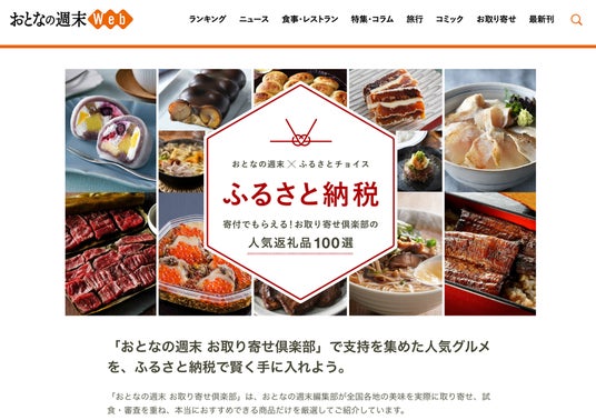 株式会社講談社ビーシー(本社:東京都文京区、以下 講談社ビーシー)は、株式会社トラストバンク(本社:東京都品川区)が運営する国内最大級のふるさと納税ポータルサイト「ふるさとチョイス( https://www.furusato-tax.jp/ )」と提携し、講談社ビーシーが発行するグルメ情報誌『おとなの週末』の公式通販サイト「おとなの週末 お取り寄せ倶楽部( https://www.otoshu.com/ )」に掲載されている厳選グルメを、ふるさと納税の返礼品として提供する新サービスをスタートいたしました。