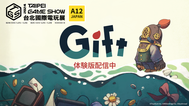 ブシロード、トイジアム、ミリオンエッジの3社が手がける5月9日(木)発売のインディーゲームタイトル『Gift』が1月25日(木)~28日(日)台湾最大のゲームイベント台北ゲームショウに出展中!INDIE HOUSEのA12・ Bushiroad Inc.ブースで体験版の試遊を行っています。イベントにお越しの際は是非お立ちよりください!