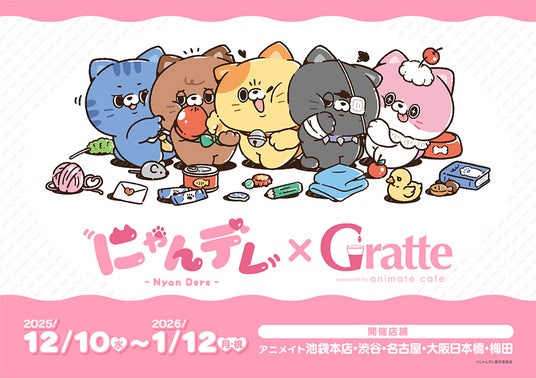 株式会社アニメイトは、「『にゃんデレ』×Gratte」をアニメイト一部店舗にて2025年12月10日~2026年1月12日まで開催いたします。