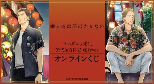 漫画・アニメのオリジナルグッズを販売する株式会社アルマビアンカ(本社:東京都中野区、代表取締役:坂井智成)は、自社オンラインくじサービス「DRAW!DRAW! -ドロー!ドロー!-」にて5月1日(木)より『囀る鳥は羽ばたかない』ヨネダコウ先生 矢代&百目鬼 旅行ver. オンラインくじを販売いたします!