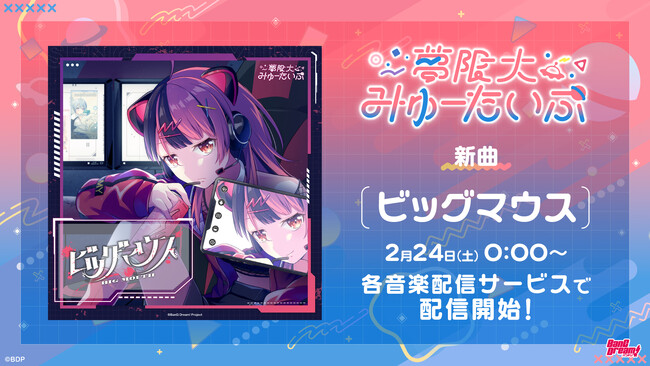 各音楽配信サービスにて、新曲「ビッグマウス」の配信が2月23日(金・祝) 24時よりスタートとなります。