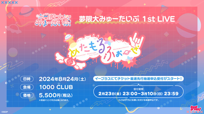 株式会社ブシロードミュージックは、バンドリ!プロジェクトの新バンド「夢限大みゅーたいぷ」が、