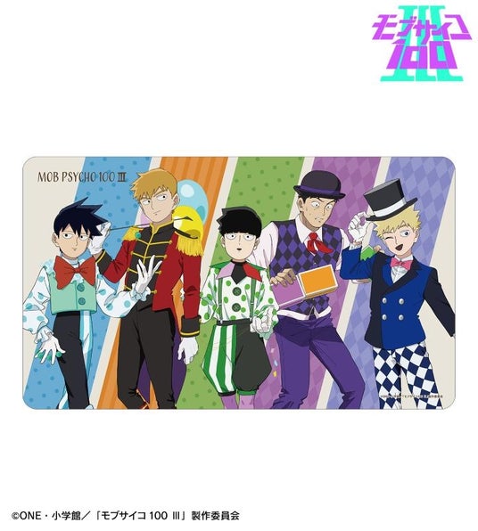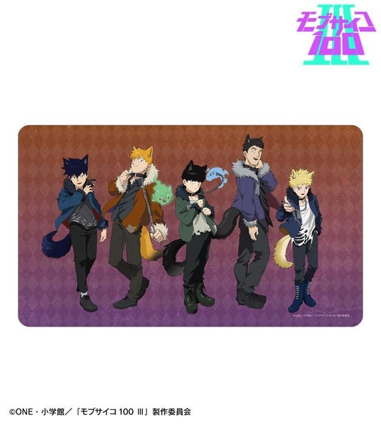 影山茂夫、霊幻新隆、エクボ、影山律、花沢輝気、芹沢克也の描き下ろしイラストをマルチデスクマットに仕上げました。