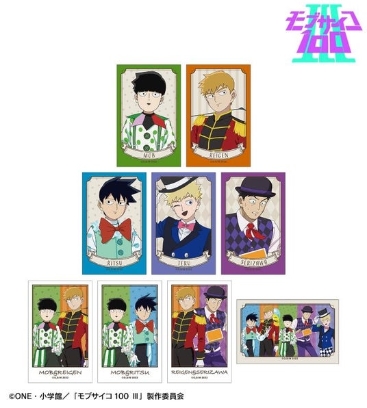 影山茂夫、霊幻新隆、エクボ、影山律、花沢輝気、芹沢克也の描き下ろしイラストをブロマイド5枚セットに仕上げました。
