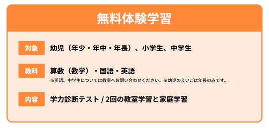 内容:学力診断テスト/2回の教室学習と家庭学習