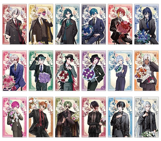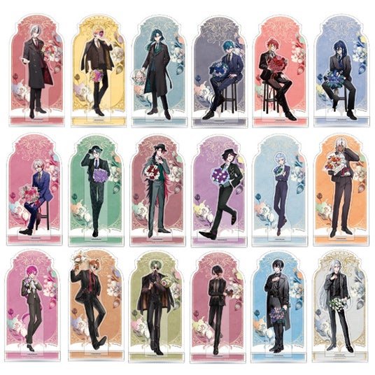 新商品には、「アクリルスタンド」や「グリッターキャラバッジコレクション」、「証明写真館」などをラインナップ。花束を手にする執事たち18人の描き起こしビジュアルを使用しており、1階は赤倉氏、2階はさくしゃ2氏、3階はshu氏、地下はmarumoru氏、別邸1階は水溜鳥氏、別邸2階は石据カチル氏がそれぞれ手掛けています。