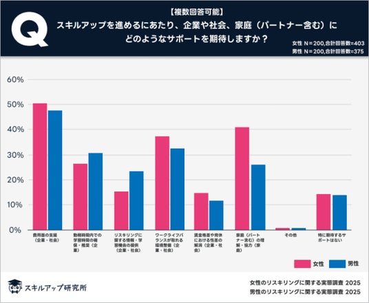 この背景には、女性がスキルアップに取り組む上で、時間的制約に加え、家事や育児といった家庭内での役割分担の偏りから、周囲の理解と協力が不可欠であるという認識が強く影響していると考えられる。