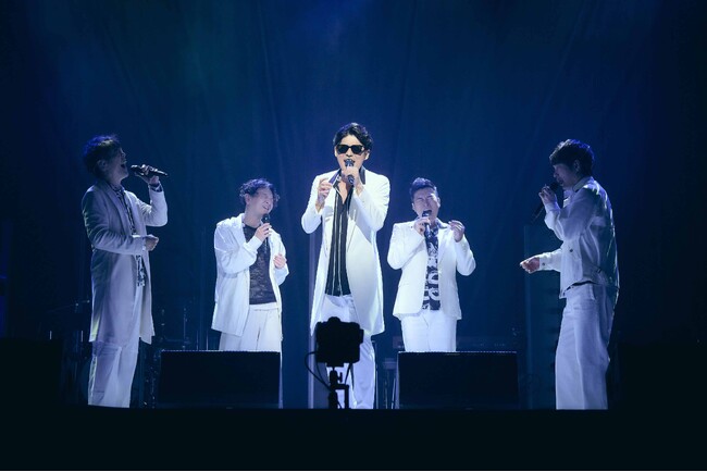 現在のサウンドを満喫した後は、時を巻き戻して歴史を紐解いていく。ブレイクのきっかけとなったラブソング「永遠(とわ)に」では、5人の歌声を支えるバンドの演奏と共に極上の音楽空間が創出される。そして、アカペラで披露された「ひとり」では、村上てつやのソウルフルなリードヴォーカルとファルセットに4人のコーラスが寄り添う。“熱唱”を超えた“絶唱”に、ただただ酔いしれるばかりだ。