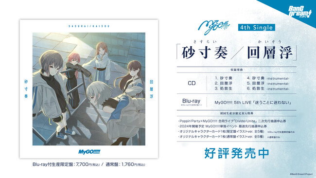 新曲「砂寸奏」「回層浮」が両A面の表題として収録された、MyGO!!!!! 初の両A面Singleが好評発売中です。