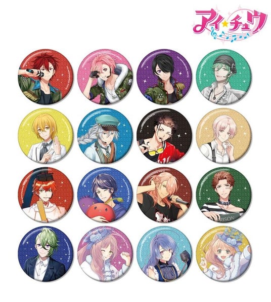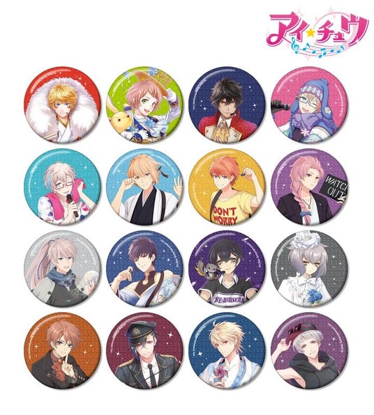 愛童 星夜、湊 奏多、御剣 晃、枢木 皐月、枢木 睦月、ノア、レオン、黎 朝陽、ラビ、リュカ、エヴァ・アームストロング、山野辺 澪、十文字 蛮、夜鶴 黒羽、麗 朔空、バベルのイラストをグリッター加工を施した缶バッジに仕上げました。