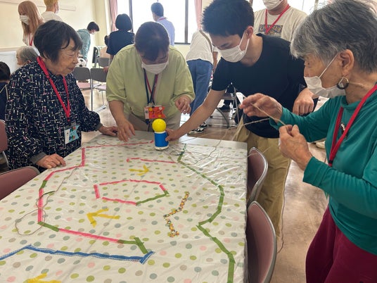「愛の家グループホーム小平上水南」は、2023年6月よりコミュニティ・カフェに参加しています。学生が準備し、レクリエーションを中心とした取り組みを実施。今回は、“紙コップレース”や“こいのぼりの名札づくり”“風船入れ”“脳トレカップ並べ”などを行い、学生とご利用者がコミュニケーションを取りながら楽しいひと時を過ごしました。