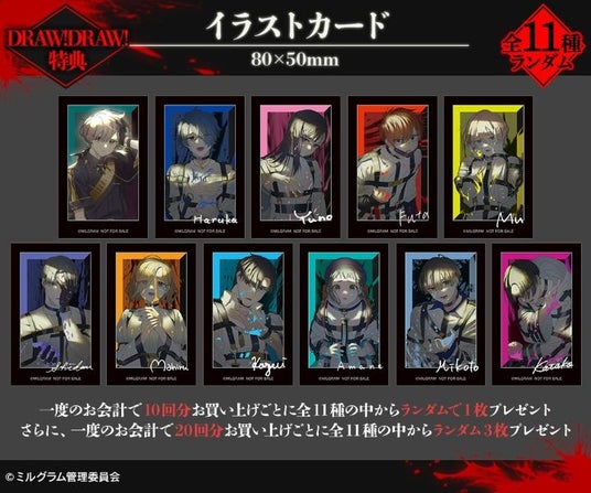 漫画・アニメのオリジナルグッズを販売する株式会社アルマビアンカ(本社:東京都中野区、代表取締役:坂井智成)は、自社オンラインくじサービス「DRAW!DRAW! -ドロー!ドロー!-」にて6月12日(木)より『MILGRAM -ミルグラム-』オンラインくじ vol.4を販売いたします!