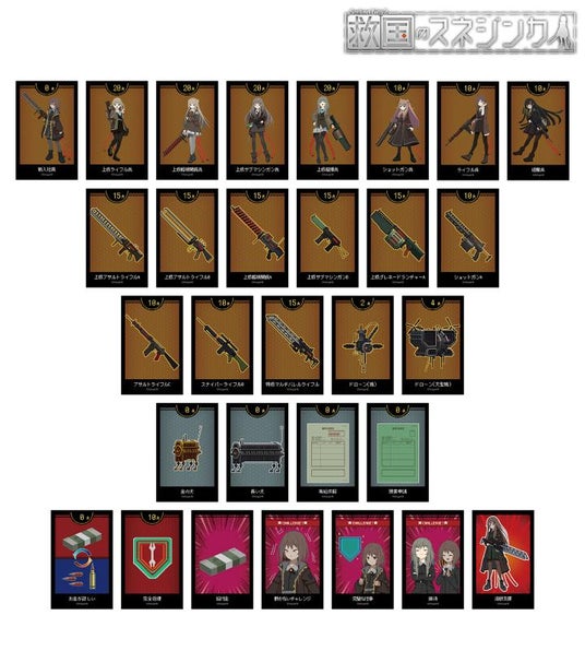 スネジンカ、アニタ、エクトル、クラサフカ、ダチカ、デジク、アブレック、リシチカのドットイラスト、武器、ドローン、ゲーム内カードをイラストカードに仕上げました。