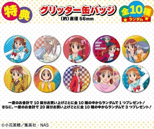 一度のお会計で10回分ご購入ごとに特典グリッター缶バッジ (全10種)の中からランダムで1つ、20回分ご購入ごとにランダムで3つプレゼント!