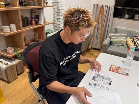 真剣にゲラをチェックするSHOKICHI。「念願のマンガ作りに関われて、めちゃうれしいです!」とのこと。