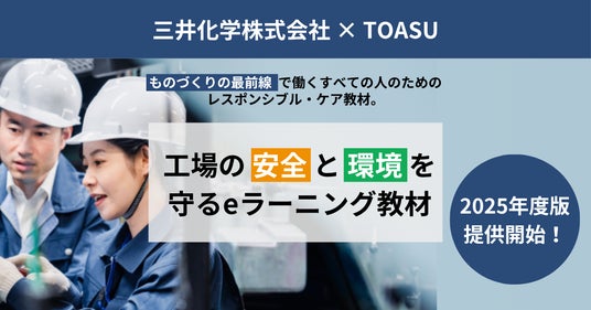 株式会社 学研ホールディングス(東京・品川/代表取締役社長:宮原博昭)のグループ会社、株式会社TOASU(東京・品川/代表取締役社長:宮田 晃)は、ものづくり現場の最前線で働くすべての方々を対象とした「工場の安全と環境を守るeラーニング」2025年度版を7月1日にリリースいたしました。