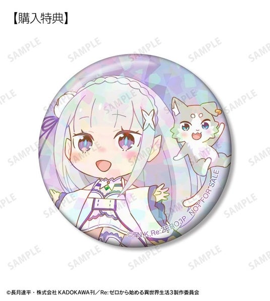 当商品を1BOX、または単品にて1BOX相当数ご注文ごとに、予約購入特典として「エミリア&パック ちびキャラ ホログラム缶バッジ AMNIBUS限定特典」を付属いたします。