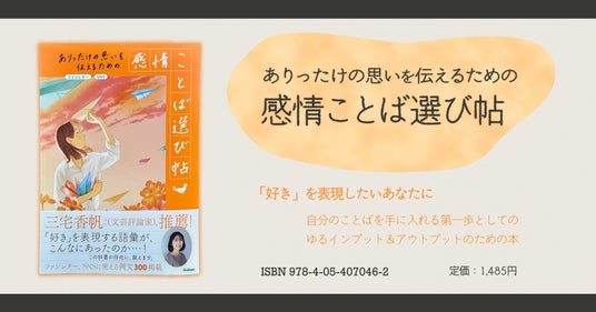 ▲『ありったけの思いを伝えるための 感情ことば選び帖』。三宅香帆さん推薦コメント入りの帯を巻いた書影。装画はイラストレーター・かないさんです
