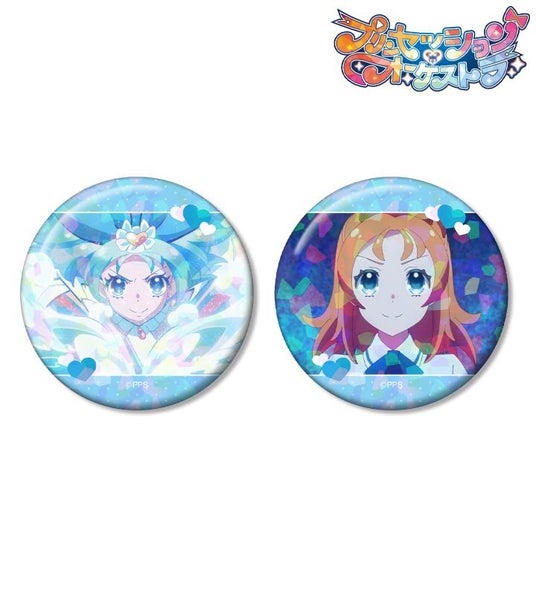 プリンセス・リップル、空野 みなも、プリンセス・ジール、識辺 かがり、プリンセス・ミーティア、一条 ながせ、カリスト、ギータ、ベス、ドランの印象的なシーンを、ホログラム加工を施した缶バッジ2個セットに仕上げました。