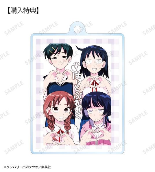 鳩野ちひろ、幸山厘、内田桃、藤井彩目、新田たまき、鷹見項希の原作コマイラスト、カラーイラストをアクリルキーホルダーに仕上げました。
