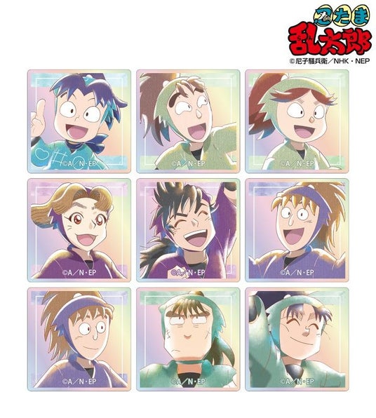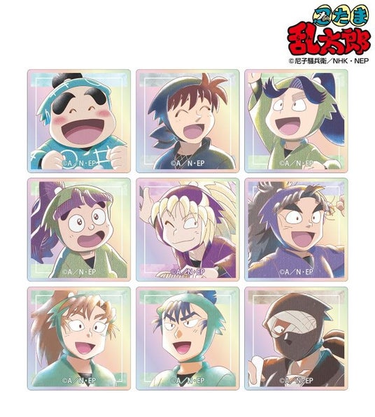 猪名寺乱太郎、伊賀崎孫兵、神崎左門、平滝夜叉丸、綾部喜八郎、久々知兵助、尾浜勘右衛門、潮江文次郎、立花仙蔵のイラストを新たなタッチで魅力的に表現し、オーロラアクリルタイルに仕上げました。