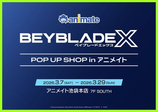 株式会社アニメイトは、2026年3月7日より現代版ベーゴマ『BEYBLADE X(ベイブレードエックス)』(発売元:株式会社タカラトミー)の「BEYBLADE X POP UP SHOP in アニメイト」をアニメイト池袋本店にて開催いたします。また、同店にてアニメイト初となるベイブレード公式大会「BEYBLADE X アニメイトカップ」の開催が決定いたしました。