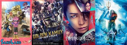 『SAND LAND』(C)バード・スタジオ/集英社 (C)SAND LAND製作委員会 / 『ゴールデンカムイ』(C)野田サトル/集英社 (C)2024映画「ゴールデンカムイ」製作委員会 /『怪物の木こり 』(C)2023「怪物の木こり」製作委員会 / 『アクアマン/失われた王国』(C) & TM DC (C) 2023 WBEI