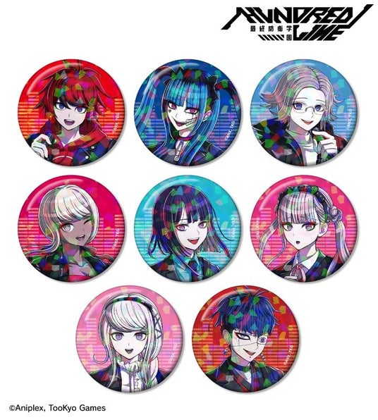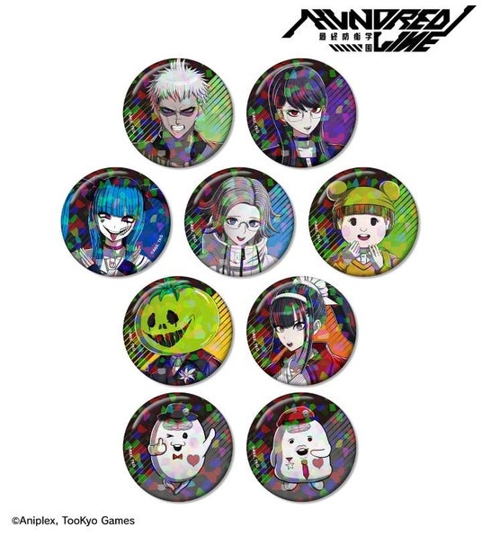 厄師寺猛丸、雫原比留子、飴宮怠美、蒼月衛人、銀崎晶馬、大鈴木くらら、凶鳥狂死香、SIREI、NIGOUのイラストをホログラム加工を施した缶バッジに仕上げました。