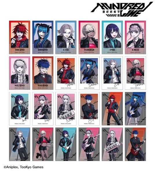 澄野拓海、厄師寺猛丸、雫原比留子、飴宮怠美、蒼月衛人、川奈つばさ、丸子楽、九十九今馬、九十九過子、銀崎晶馬、霧藤希、大鈴木くらら、凶鳥狂死香、面影歪、喪白もこ、SIREI、NIGOUのイラストをブロマイドに仕上げました。