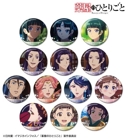 猫猫、壬氏、高順、玉葉妃、梨花妃、里樹妃、楼蘭妃、小蘭、子翠の印象的なシーンを缶バッジに仕上げました。