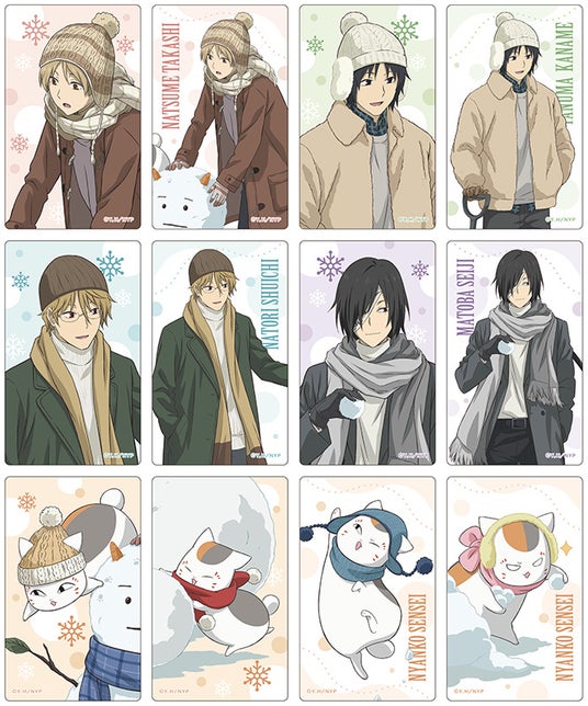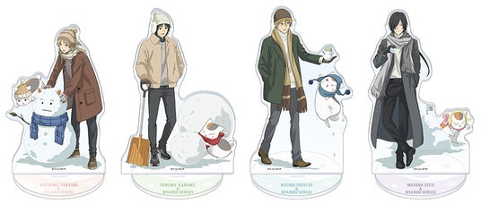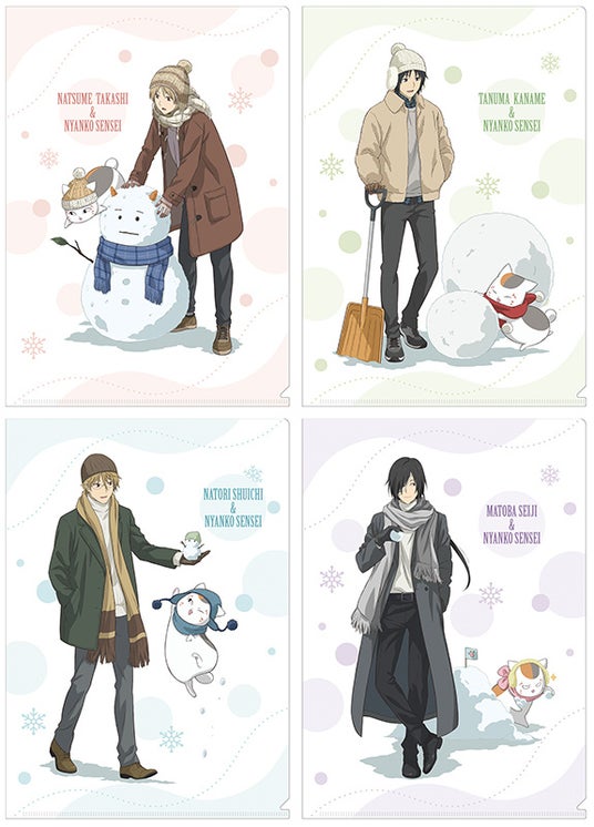 新商品には、ニャンコ先生と雪遊びを楽しむ夏目貴志、田沼要、名取周一、的場静司の描き下ろしイラストを使用した「アクリルスタンド」や「クリアファイル」のほか、ニャンコ先生だけをフィーチャーした「レターセット」など、多彩なアイテムをラインナップしています。