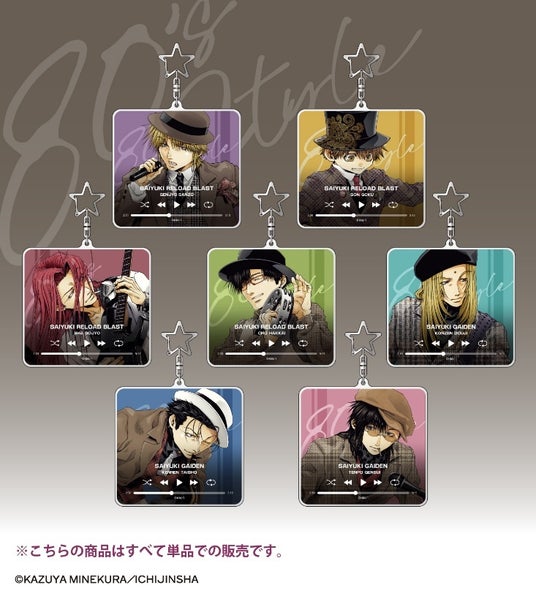 それぞれ、峰倉かずや先生が「バンド」をコンセプトに描き下ろされたイラストの玄奘三蔵、孫悟空、沙悟浄、猪八戒、金蟬童子、捲簾大将、天蓬元帥をメインにデザインしました。