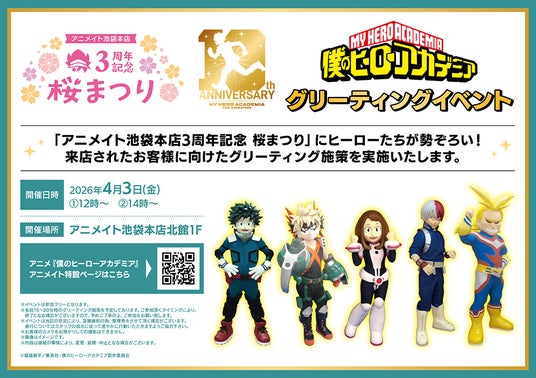 株式会社アニメイトは、【アニメ『僕のヒーローアカデミア』放送開始10周年記念キャンペーン】を2026年4月3日から開催いたします。