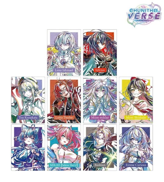レナ・イシュメイル、真なる奏者 シルヴィアス、不来方 とあ、ロト・トゥエルヴ、導師 ミィム・ミクラー、宍戸 美鈴、ナイ、MIR-203【セレネ・シェリル】、覚醒者バシアン、アイリーニ・キュリアスのイラストを新たなタッチで魅力的に表現し、イラストカードに仕上げました。